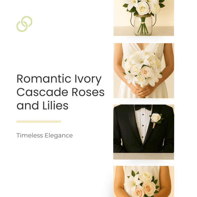 The Romantic Ivory Cascade Roses and Lilies Wedding Flowers Bundle is designed for couples who want their entire wedding day to feel seamlessly coordinated. Featuring radiant golden spray roses and elegant lilies, each piece — from aisle markers to bridesmaids bouquets, flower girl posies, buttonholes, and the top table centrepiece — is styled to complement the bridal bouquet. This ensures that every floral detail across your celebration carries the same romantic, golden-toned beauty.