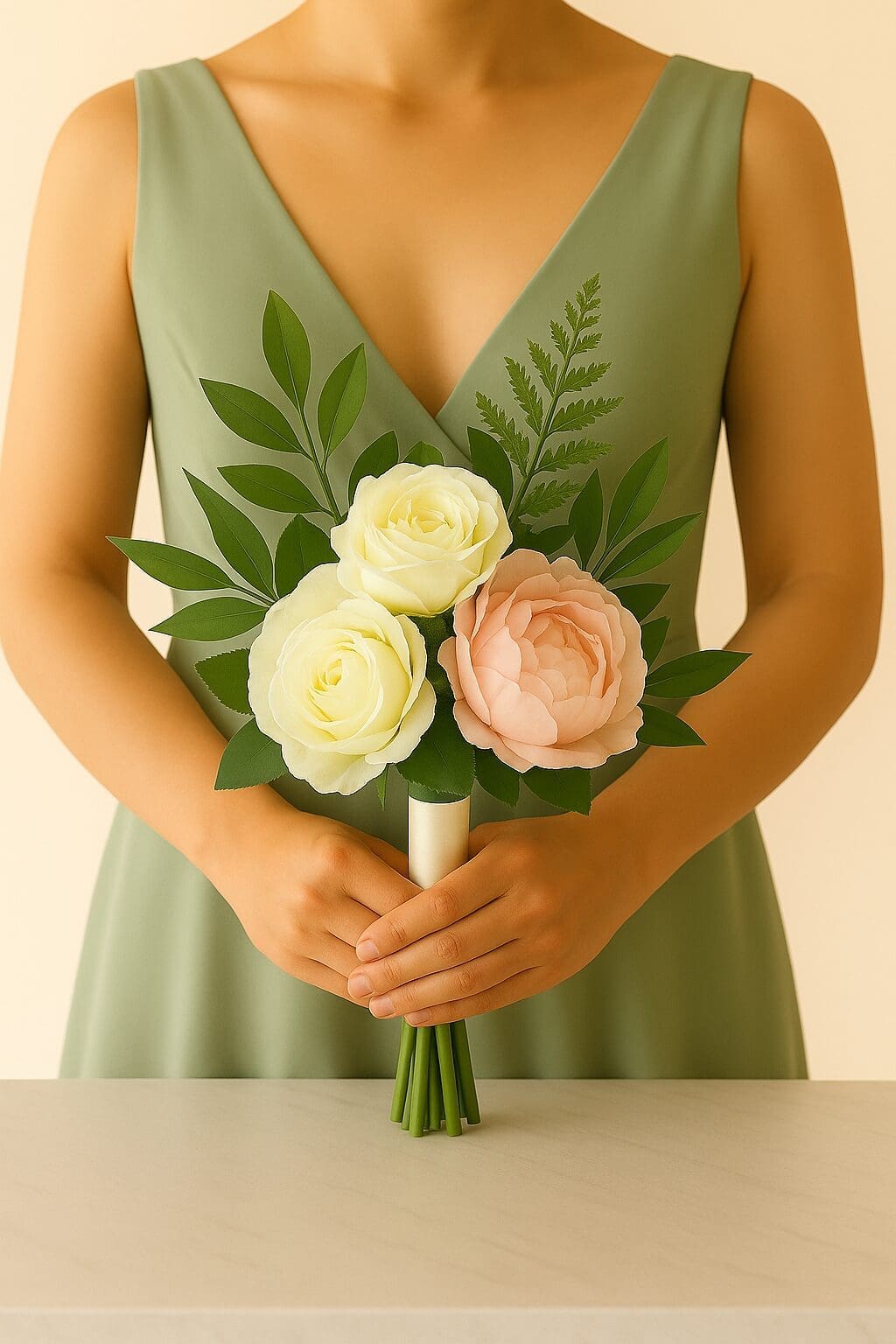 Whether you’re styling an intimate ceremony or a grand celebration, the wild petal greens roses and peonies bridesmaids bouquets wedding adds balance, texture, and romance. It pairs beautifully with neutral, pastel, or champagne palettes and complements modern, classic, or boho themes.